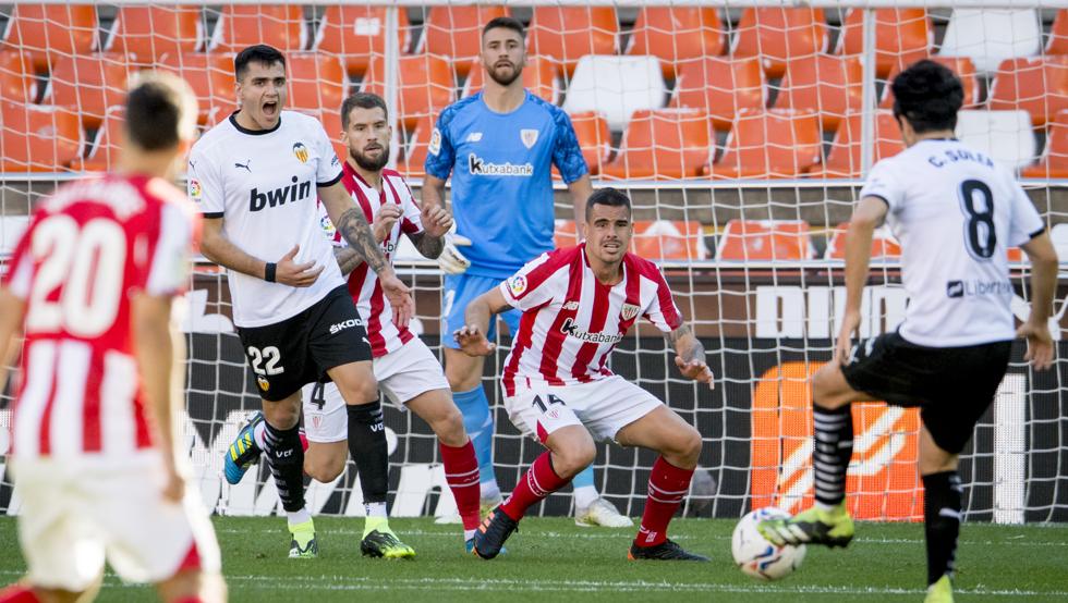 Los bilbaínos asumieron la manija desde el inicio, pero se presentaron al descanso con un escaso bagaje de un chut entre palos. En lo poco que concedieron al Valencia, como viene siendo habitual, recibieron un doloroso impacto que hay que apuntar en la lista de los deméritos del Athletic más que en la de los méritos che. Un penalti regalado por Dani García que convirtió Carlos Soler. La tercera pena máxima ingenua del curso. Se suma a la de Capa en Pamplona (1-0) y a la de Unai Simón en Valladolid (2-1).