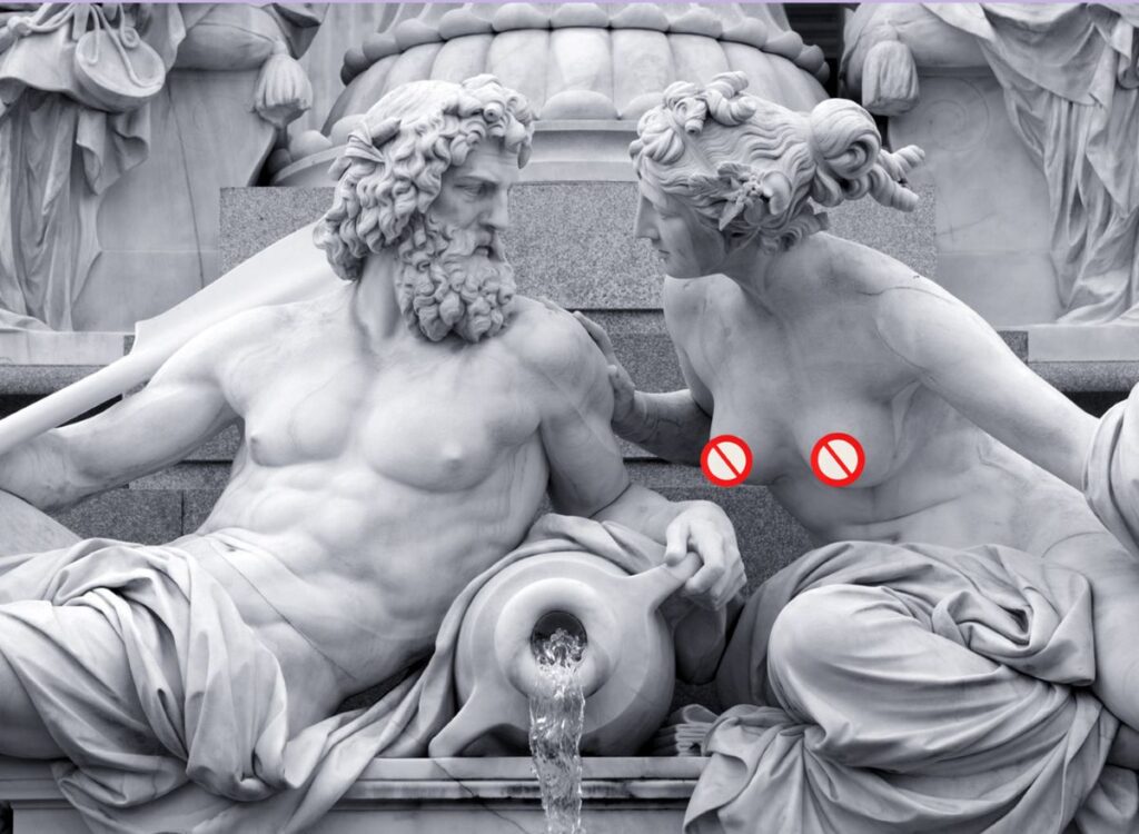 Pero ¿cuándo convertimos al pezón femenino en un tabú de semejante poder? ¿Cuándo lo escindimos de sus partenaires masculinos y adquirió la naturaleza de elemento disruptivo, de escándalo, de elefante rosa en la habitación? Porque eso es algo que, obviamente, hemos hecho nosotros. No se trata de algo innato, de un temor atávico que haya caminado siempre de la mano de los pezones femeninos, y la historia del arte ofrece buenas muestras de ello: nadie puede ignorar la contundencia mamaria de la primera escultura del mundo conservada, la Venus de Willendorf (data del año 28.000 a.C., Facebook la censuró en 2018 d.C.). En el arte egipcio torsos de mujeres y de hombres son retratados sin pudor, lo que nos indica que ambos géneros iban desnudos de cintura para arriba. Igual sucede con la cerámica precolombina (echen un vistazo a la cerámica del pueblo mochica), la escultura griega y romana y, por extensión, las manifestaciones artísticas del Renacimiento.