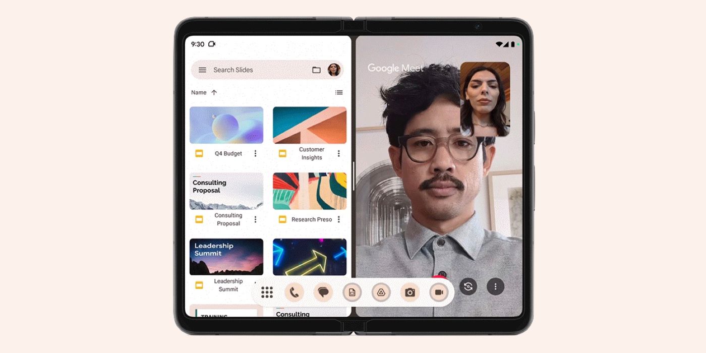 Como era de esperar, Google ha incluido algunas funciones de software para la pantalla interna. El modo de pantalla dividida permite a los usuarios abrir dos aplicaciones una al lado de la otra, y hay una función de arrastrar y soltar que permite a los usuarios arrastrar imágenes, texto, videos y enlaces desde una aplicación y soltarlos en otra. Por ejemplo, los usuarios pueden arrastrar imágenes de Google Photos y soltarlas en Mensajes o Correo.