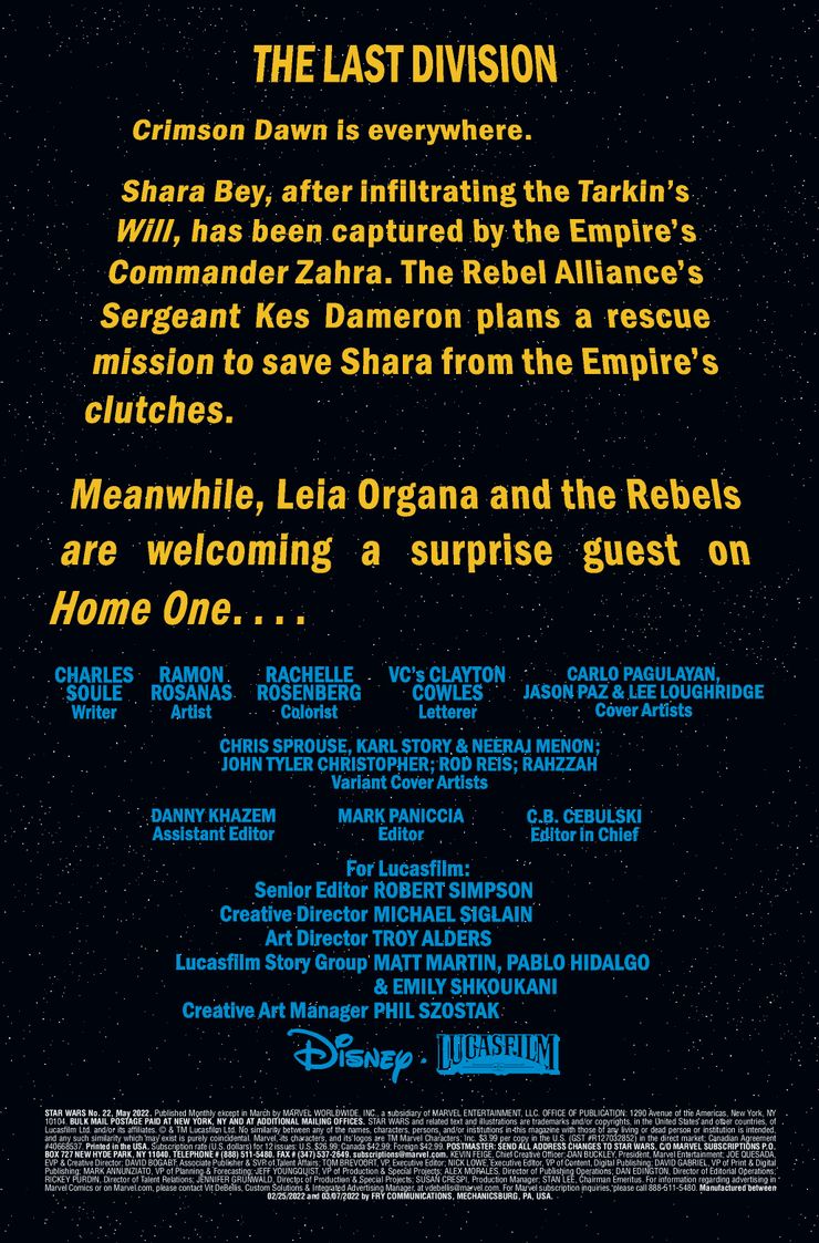 Ha llegado el momento de que la flota de LA ALIANZA REBELDE traiga a casa su última división perdida… pero para hacerlo, LEIA ORGANA, MON MOTHMA y los demás líderes de la Alianza deberán confiar en la inteligencia proporcionada por la organización criminal notoriamente poco confiable CRIMSON DAWN.