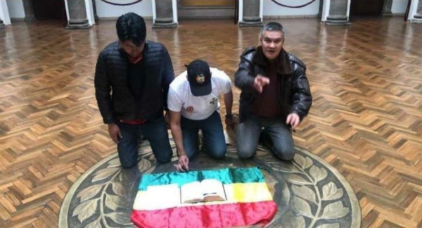 Camacho se presenta como un líder conservador. Luego de darse a conocer la renuncia de Morales, él ingresó al viejo Palacio de Gobierno de La Paz y depositó una Biblia, la cual colocó sobre la bandera.