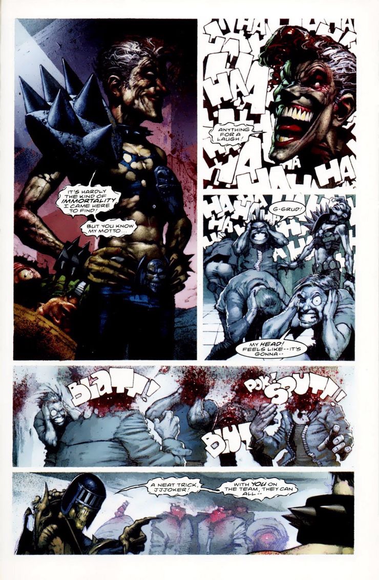 En Batman/Juez Dredd “Die Laughing” #2 de Alan Grant, John Wagner y Jim Murray, el Joker ha viajado al universo del juez Dredd después de usar un cinturón de teletransportación multiversal. Cuando llegó allí en el número anterior, el Joker ayudó a un villano con superpoderes conocido como Judge Death a escapar del encarcelamiento, y fue recompensado con algunos poderes propios verdaderamente siniestros.