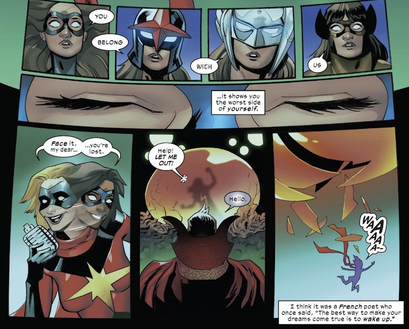 “/> Sus pesadillas la muestran siendo perseguida por todos sus equipos: Campeones, Vengadores, Inhumanos y ahora X-Men. Al final, se ve perseguida de regreso al huevo del que resucitó y le habla una figura extraña que está más cerca de ella de lo que ella cree.
