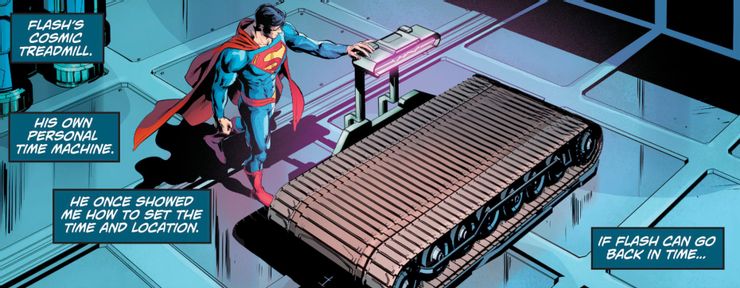 Entonces, ¿qué significa eso para un héroe que puede igualar la rapidez de Flash? Superman demostró que, independientemente de una conexión con la enigmática Speed Force, un héroe lo suficientemente rápido podría utilizar el arma más curiosa del arsenal de Flash: la cinta de correr cósmica. En Cómics de acción #992 por Dan Jurgens, Rob Williams y Will Conrad, el mundo de Superman comienza a desmoronarse cuando descubre que su padre kryptoniano, Jor-El, está vivo y se ha hecho pasar por el misterioso Sr. Oz. Los amigos de Clark lo ayudan a darse cuenta de que alguien ha estado jugando con la línea de tiempo y que la única forma en que puede descubrir lo que está sucediendo es viendo la destrucción de Krypton por sí mismo. Va a la Atalaya de la Liga de la Justicia y encuentra la máquina del tiempo que Flash usa con frecuencia. Poniendo todo lo que tiene en ello, Clark activa la cinta de correr cósmica y viaja con éxito hacia atrás en el tiempo.