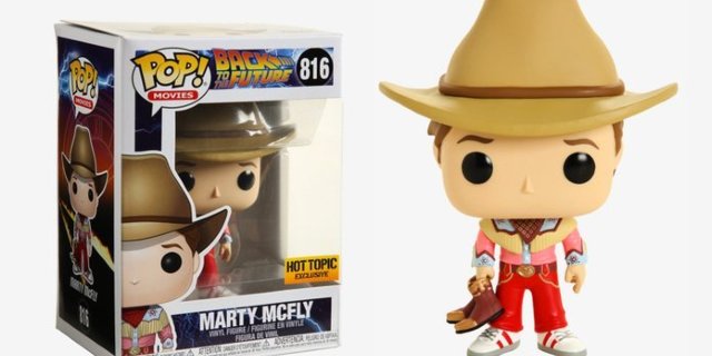 Funko y Hot Topic se han unido para agregar a Marty McFly en su atuendo de vaquero de los años 50 de Back to the Future Part III a su línea de figuras Pop. El detalle es bastante fantástico en este caso: tenga en cuenta los símbolos de los átomos, el diseño de la hebilla del cinturón y las botas vaqueras / zapatillas de deporte.