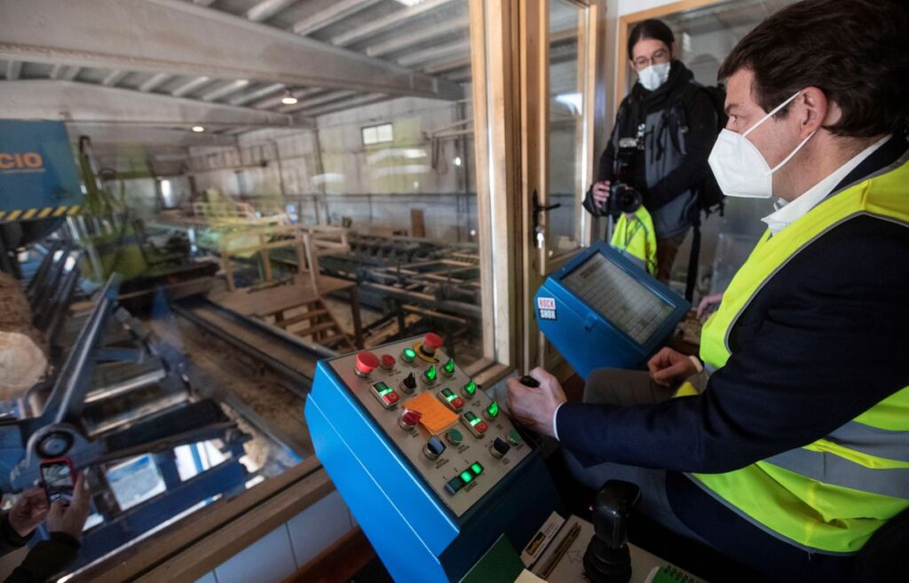 Alfonso Fernández Mañueco durante una visita a una empresa maderera en Soria, este miércoles.Wifredo Garcia (EFE)