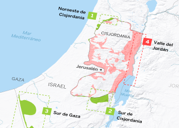 Palestina ganaría una zona de colinas áridas más allá del límite sur de la frontera actual.