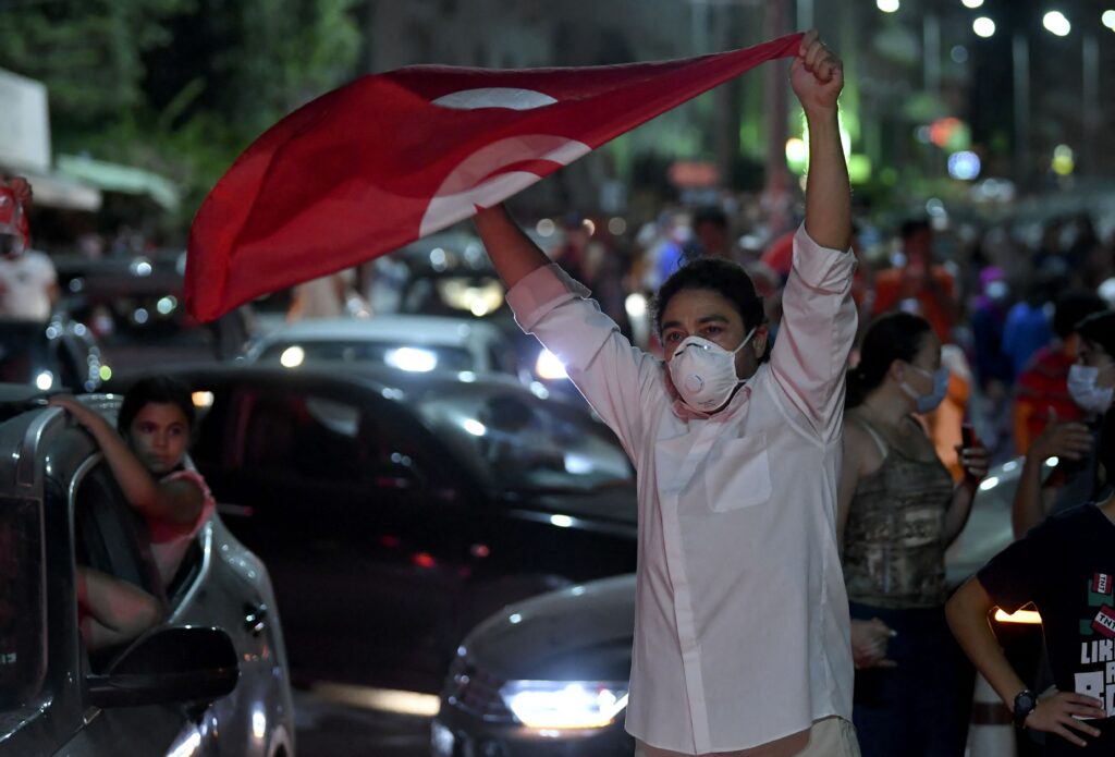 Después del anuncio de Saied, retransmitido por la televisión pública pasadas las 21.30, miles de personas salieron a la calle para mostrar su apoyo al presidente haciendo sonar las bocinas de sus coches y ondeando banderas tunecinas. La celebración fue permitida por la policía a pesar de que está en vigor el toque de queda entre las 20.00 y las 5.00 de la mañana, una de las medidas adoptadas por las autoridades para contener la explosión de infecciones de covid-19. Los hospitales del país se hallan desbordados, y muchos de ellos no poseen de suficiente oxígeno para suministrarlo a los pacientes con covid. En un país de 11 millones de personas, las muertes registradas por el nuevo coronavirus oscilan alrededor de las 200.