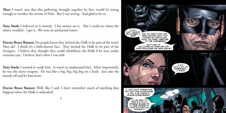 Tocado por primera vez en la historia de respaldo de Los Nuevos Vengadores # 1, “La Historia Oral de los Vengadores” detalla los eventos que rodearon el primer equipo de los Vengadores directamente de la boca de los héroes que estaban allí. Al volver a contar cómo Ant-Man, Wasp, Thor y Iron Man tuvieron que enfrentarse a un Hulk controlado por Loki y salvar el día, una de las líneas de Iron Man llama la atención sobre cuáles eran sus intenciones originales para el Goliat Verde de Marvel: “Quería estudiarlo. No era para entenderlo … él era el arma secreta “.
