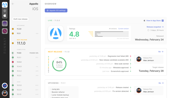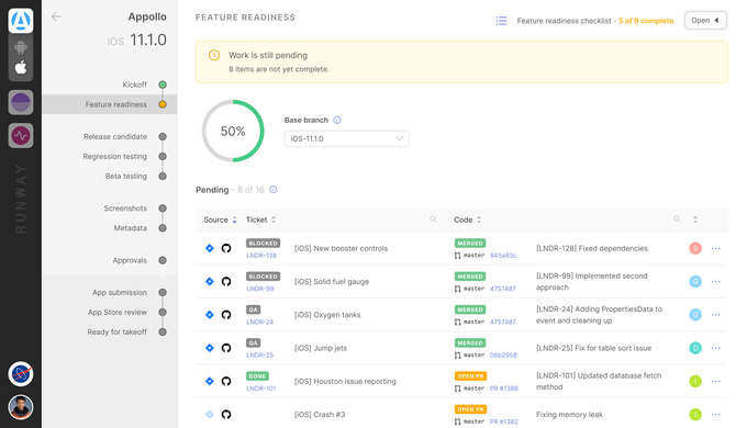 Un equipo de ingenieros y diseñadores de aplicaciones móviles de empresas como Rent the Runway, ClassPass, Kickstarter y otras, están lanzando ahora su propia startup, Runway, para abordar los puntos débiles comunes que experimentaron en torno al ciclo de lanzamiento de la aplicación móvil. Con Runway, los equipos pueden conectar sus herramientas existentes para realizar un seguimiento del progreso del lanzamiento de una aplicación, automatizar muchos de los pasos manuales a lo largo del camino y facilitar mejor la comunicación entre todos los involucrados.