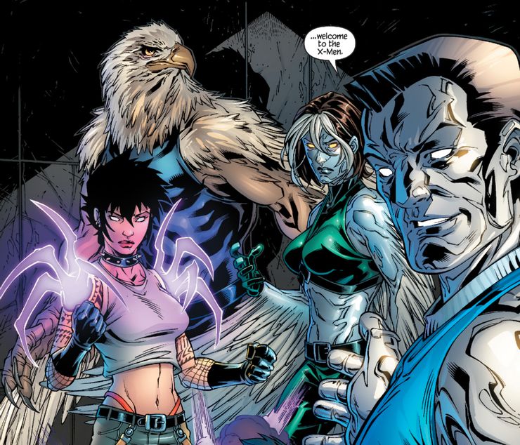 Una continuidad separada diseñada para contar historias libres de la historia de los cómics convencionales, Ultimate Universe puso a sus mutantes en el infierno, desde ser torturados por organizaciones gubernamentales turbias hasta que se recolectara su ADN para crear drogas que mejoran el poder. Cuando Angel usa a Banshee para unirse a la versión supercargada de Colossus de los X-Men, el resultado final se ve en Ultimate X-Men #94 (por Aron E. Coleite, Mark Brooks, Jaime Mendoza y Brandon Peterson) sugiere que sus alas fueron en realidad solo una mutación aviar todo el tiempo. La hormona MGH llevó los poderes de cada usuario a su límite superior, incluso revelando que Cyclops puede canalizar la energía solar para convertirse efectivamente en un dios. Para Angel, la droga hizo que el resto de su cuerpo alcanzara sus alas, con sus pies y manos reemplazados por garras y su nueva cabeza de águila descartando cualquier fuente divina en su apariencia habitual.
