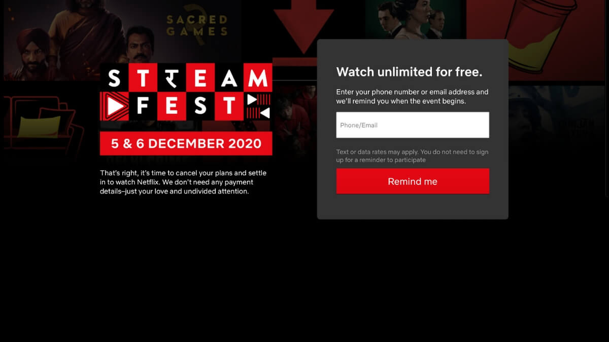 ¿StreamFest llegará a su región en el futuro? Esto podría indicar que la respuesta es sí y lo interesante es que, al menos, permite a Netflix capturar correos electrónicos y números de teléfono para acertar con marketing directo en el futuro.
