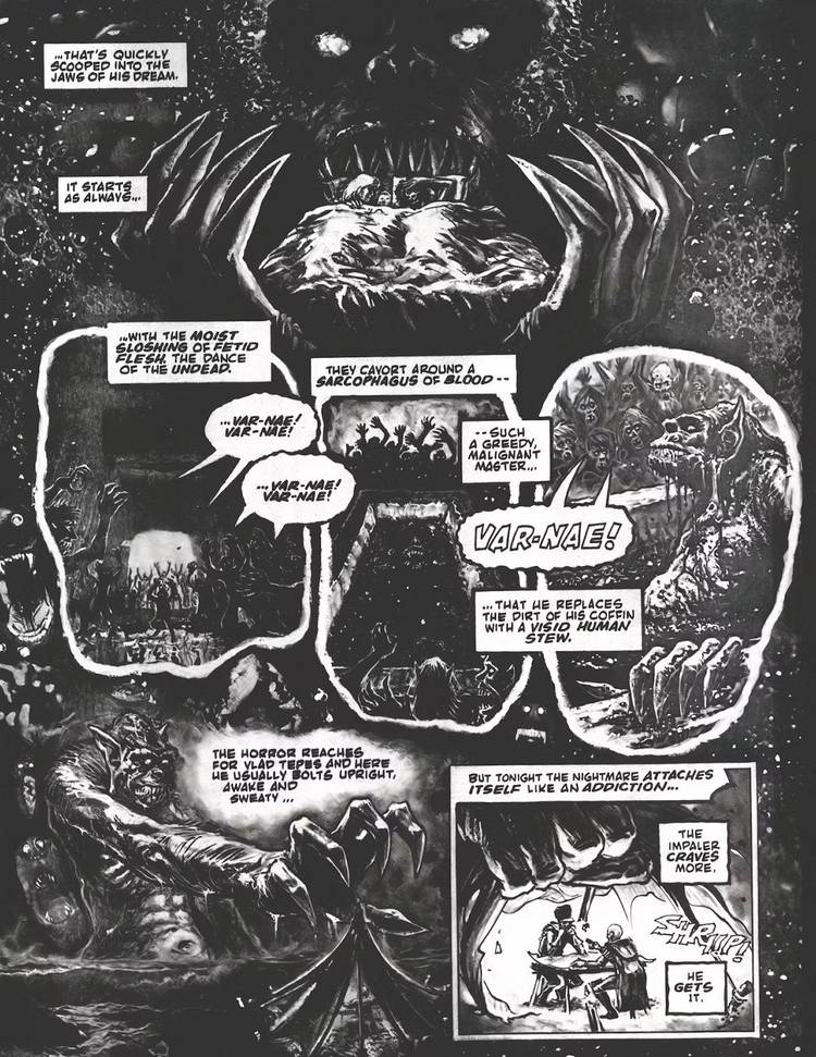 Varnae es una parte importante de la tradición actual de Blade como el señor de todos los vampiros. Él es el cerebro detrás de muchas de las primeras aventuras de Blade, e incluso intentó poseer al Daywalker por primera vez en Blade: El cazador de vampiros (1994) #5. Pero la historia de Varnae en el universo Marvel se extiende incluso más allá de esto: el personaje aparece por primera vez en “Tomb of Dracula: The Blood Bequest” de Steve Perry y Steve Bissette, de la antología de terror. Extrañas aventuras (1981) #33, donde manipula a Drácula para que se convierta en su eventual sucesor. Gran parte de la tradición Marvel moderna de Varnae se conserva de estos primeros números, incluida la naturaleza de su ataúd y sus raíces atlantes..