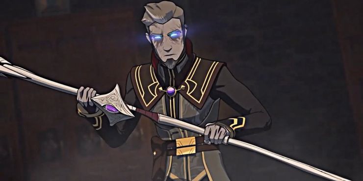 Aunque es muy estricto y demasiado serio, Runaan (Jonathan Holmes) es el mentor honorable y venerado de la protagonista Rayla. El dedicado Elfo Sombra de la Luna no se detendrá ante nada para matar al Rey Harrow y vengar la memoria del Rey Dragón.