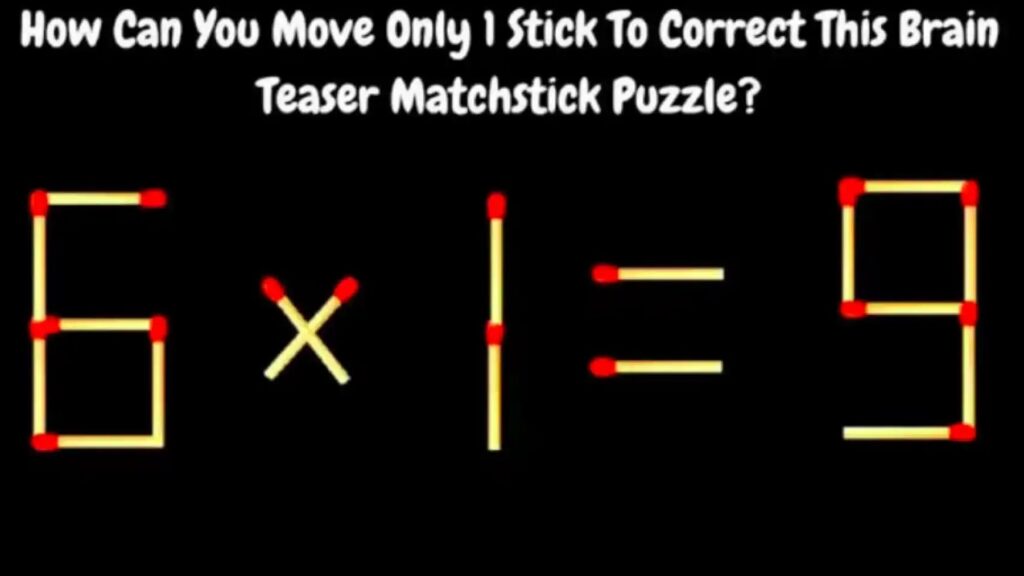 El problema consiste en resolver la igualdad que ves arriba. Las cerillas forman un número 6, un símbolo de multiplicación y el número 1. También forman el símbolo del igual y luego un número 9.