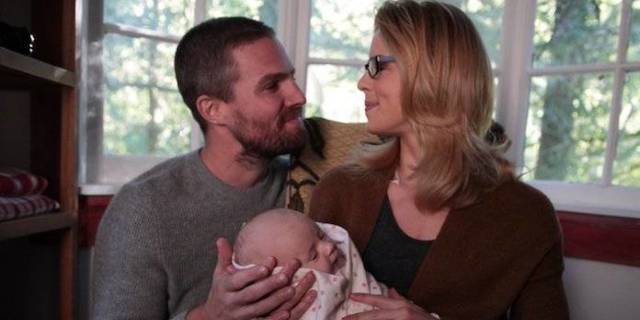La próxima salida de FlechaLa protagonista Emily Bett Rickards proyectará una larga sombra sobre la octava y última temporada de la serie, que se desarrollará en el otoño durante diez episodios. Después de reflexionar sobre la pérdida por un par de días, el estrella de la serie Stephen Amell finalmente hizo una declaración, y ahora el productor y consultor actual Marc Guggenheim ha compartido una parte de la historia de "Olicity" … aunque es realmente historia si no ha ¿No ha pasado técnicamente todavía? Los reenvíos de flash son confusos. De todos modos, él (así como el coordinador de dobles James Bamford) compartió una versión de alta calidad de una imagen de "Star City 2040", el reciente "episodio de flash-forward" de Flecha, que representa a Oliver Queen (Amell) y Felicity Smoak (Rickards) junto con su bebé recién nacido Mia. El momento es precioso ya que, según los flash-forward, Mia fue criada casi en su totalidad sin su padre.