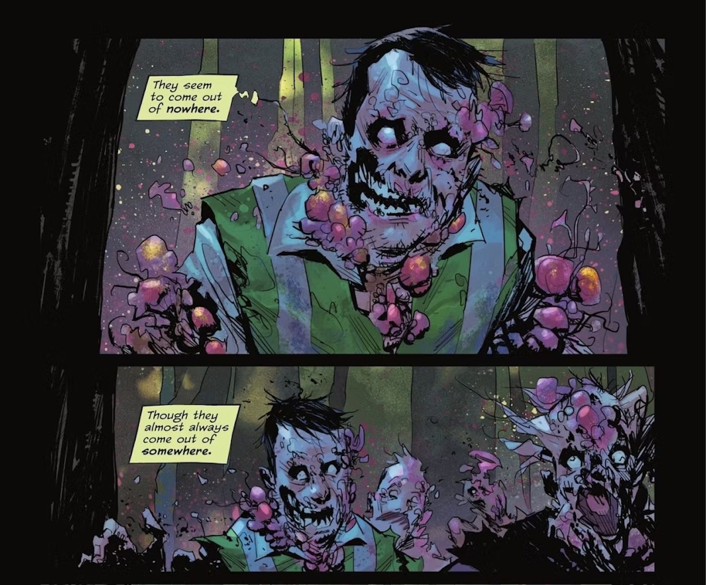 Nadie ha hecho sonar una alarma real sobre el brote de lento crecimiento, lo que significa La Bat-Familia y Gotham serán tomados con la guardia baja.. La falta de urgencia les da a los hongos muertos suficiente tiempo para converger en la ciudad mientras buscan a su “Madre”. Todavía no han intentado infectar a otros, pero si eso cambia, Gotham es la Zona Cero perfecta. Está lleno de gente y es particularmente caótico en medio de la Guerra de Gotham. Detener la propagación puede ser imposible. Por ahora, los zombies Lamia están en movimiento y Hiedra venenosa puede sufrir su evento de extinción masiva después de todo.