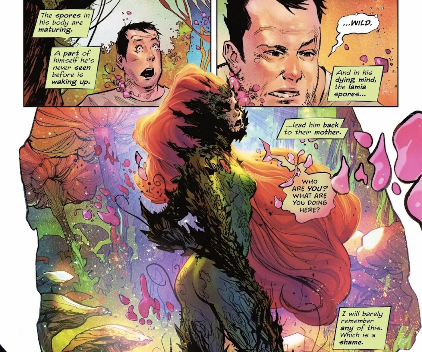 Sin embargo, un enfrentamiento con Woodrue reveló que las esporas de Lamia estaban destinadas a ser utilizadas con fines de vigilancia. No se propagaron tan rápido como Ivy esperaba y ciertamente no habían causado la extinción de la humanidad (ni nada parecido). Su fracaso fue en cierto modo un alivio, ya que sus viajes le habían demostrado que los humanos eran una parte tan importante del Verde como cualquier otra cosa, y que todavía había esperanza de salvarlo todo. Sin embargo, las esporas de Lamia no estaban simplemente inactivas mientras Pam emprende su viaje de autodescubrimiento. Estaban cambiando rápidamente, afectados por su propia fisiología y la red estrechamente interconectada que habían formado con ella en el centro.