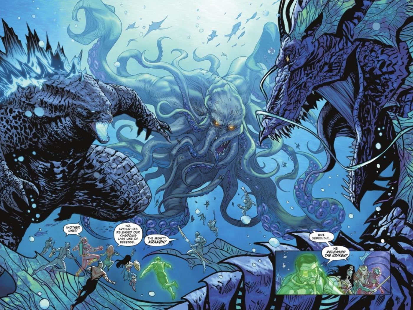 - Aquaman y sus aliados creen que el Kraken es más que capaz de evitar que Godzilla destruya el Universo DC.