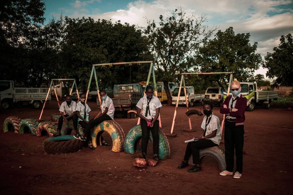 Muy cerca de la escuela se encuentran las instalaciones del centro de formación profesional. “Ofrecemos contabilidad, emprendimiento, albañilería, hostelería, informática, costura, electricidad… enumera Mubetei. “El objetivo del año pasado era formar a 500 chavales, pero por la covid-19 no llegamos a 300”. Ahora acaba de abrir el de costura, y en el aula donde se imparte, dos alumnos atienden a las explicaciones de la maestra sobre técnicas de patronaje.