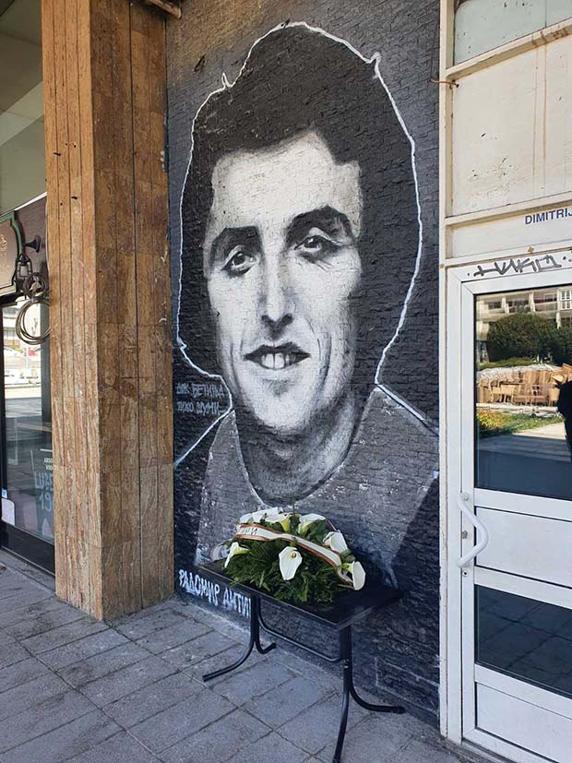 Antic, donde hay una pintura con la efigie del jugador. Hinchas del Partizan, equipo en el que jugó y entrenó, y los vecinos se despidieron de él de forma emotiva.