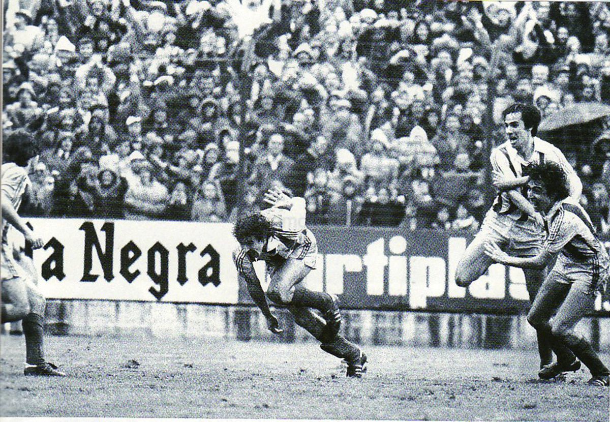 En este capítulo de la historia, un año se abre paso por encima de todos. Quizás por la relativa cercanía en el tiempo y el recuerdo de sus imágenes. Fue en la 80/81. Sus protagonistas: Jesús Mari Zamora y la Real Sociedad, y Juanito y el Real Madrid. Los donostiarras aterrizaron en Gijón con un punto de ventaja sobre los madridistas (44-43), así que les bastaba con no perder (la victoria valía dos puntos). Para el minuto siete, ya ganaban con un penalti convertido por Kortabarria. Pero el Sporting, que no era ninguna comparsa, volteó el marcador y los txuri-urdin se abocaron a un final dramático… con final feliz (2-2). En el último minuto, Zamora puso a toda San Sebastián del revés. Su foto subido a la valla de El Molinón para celebrarlo con la marabunta desplazada hasta allí es una de las postales de la Liga.
