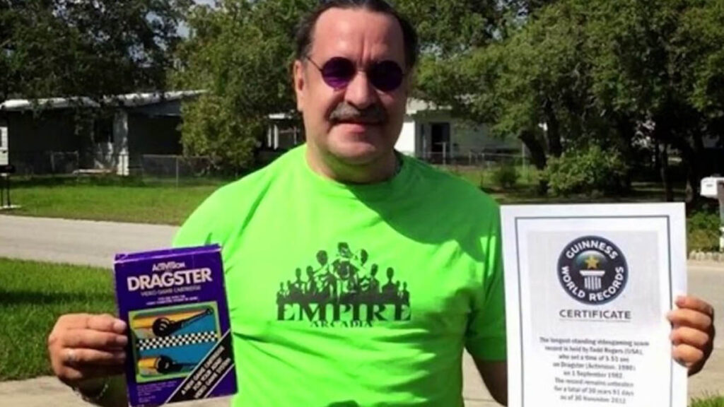 Aunque los videojuegos todavía estaban dando sus primeros pasos en 1982, ya había jugones interesados en llevar al límite los diferentes títulos disponibles. Uno de ellos, Dragster, fue el protagonista involuntario del primer récord Guinness de los videojuegos. Y es que este juego de carreras de Atari 2600 fue en el que registró la plusmarca conseguida por Todd Rogers, que logró un tiempo de 5 segundos y 51 décimas.