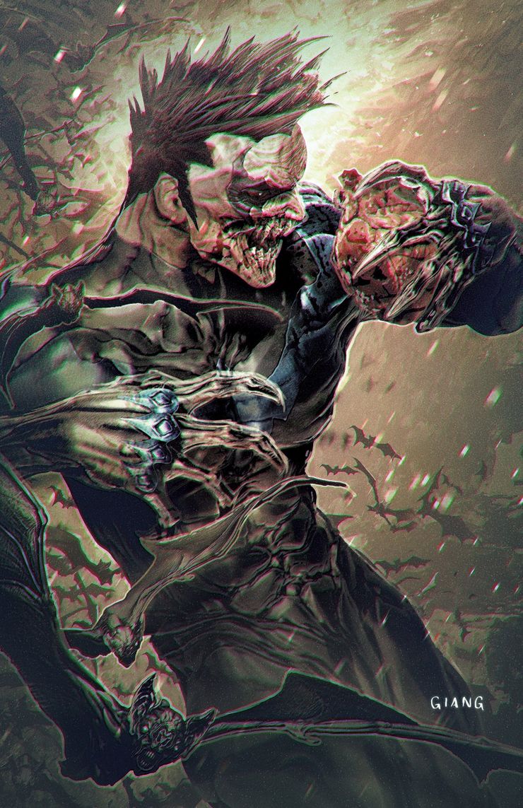 Tradicionalmente, las portadas de Nightwing están llenas de esperanza e inspiración. Recientemente en el Ala noche serie de Tom Taylor y Bruno Redondo, todas las portadas están llenas de un Nightwing sonriente con colores brillantes. La serie de Tynion y Rosenberg con la obra de arte de Giang cambia esta imagen de Nightwing para duplicar los eventos impactantes y horribles de DC contra vampiros. Esta nueva obra de arte oficial de Giang captura perfectamente el horror del rey vampiro. Ala noche.