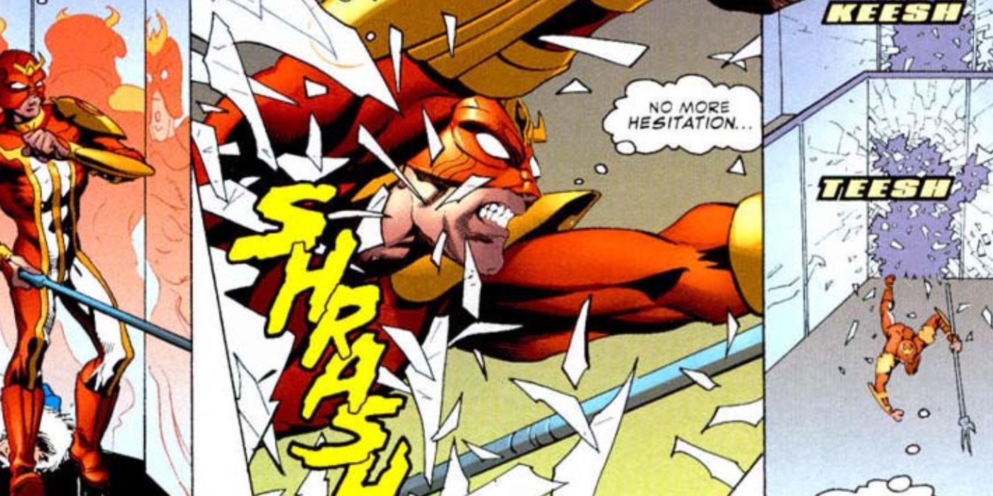 Equipado con “artes marciales, abandono intrépido, bastón tridente e incluso velocidad. Tal como es”, Wally al principio abandona el equipo pensando que es inútil sin sus poderes, solo para eventualmente regresar con un diseño completamente nuevo. Vestido con un casco de media cara con detalles en forma de alas en la parte delantera que casi parecen cuernos, Flash conserva su combinación de colores rojo y amarillo, pero termina visualmente pareciendo nada parecido a lo que los fanáticos han llegado a reconocerlo. dándole a Wally un disfraz que le quedaría perfecto en casa protegiendo a los ciudadanos de Gotham City y más allá.