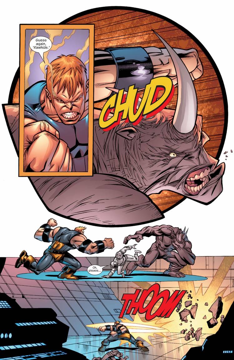 En un momento, Chameleon cambia de forma a Rhino, mostrando un diseño nunca antes visto, que cuenta con un casco muy estilo Juggernaut y una armadura significativamente más resistente en todo su cuerpo, y esta nueva armadura podría ser la clave para que Rhino finalmente supere su rivalidad con Juggernaut.