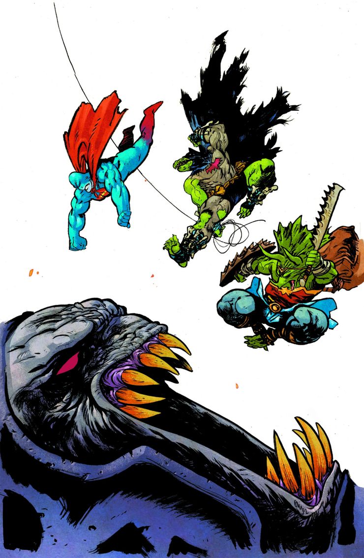 La Liga Jurásica es una nueva serie de Juan Gedeon y Daniel Warren Johnson que se enfoca en los héroes y villanos favoritos de todos como dinosaurios. La historia se centra en los héroes prehistóricos que se enfrentan a una avalancha de enemigos que atacan a la vez. Desde el Joker como Jokerzard hasta Bizarro como Brontozarro, los villanos proclaman que están trabajando con un ser misterioso llamado Dark Embryo. Brontozarro menciona en La Liga Jurásica #3 que la entidad es un ser de otro mundo que va de planeta en planeta, extrayéndolo de su energía y luego pasando al siguiente. Quién es el Embrión Oscuro ha estado envuelto en misterio, ya que hace que Joker cree el equipo más salvaje de DC, pero una nueva portada ha mostrado quién es probablemente, y seguramente será el mayor enemigo de la Liga Jurásica hasta el momento.