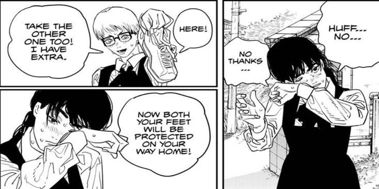 En Hombre motosierra, no es ningún secreto que los personajes más queridos son los que más sufren. La primera parte no contuvo nada con la muerte de todo el equipo Devil Hunting de Denji, excepto Kobeni. Los personajes a los que los fanáticos estaban más unidos, Aki y Power, también experimentaron las muertes más dolorosas y desgarradoras. En Hombre motosierra Segunda parte, capítulo 3, se ve a Asa Mitaka siendo intimidada sin descanso por sus compañeros en la escuela secundaria. Estos matones van tan lejos como para cubrir sus zapatillas con pollo crudo viscoso, destruyendo efectivamente sus zapatos. La nueva amiga Devil Hunting de Asa, Yuko, demuestra lo buena persona que es al prestarle a Asa uno de sus zapatos para que caminen a casa. Gracias a esto, Yuko y Asa solo tienen que lidiar con el dolor de un pie sin zapatos. Yuko incluso le da a Asa su otro zapato una vez que llega a casa, demostrando su buen corazón. Desafortunadamente, en cuanto Hombre motosierra va, esto es más o menos un claro indicio de que Yuko va a experimentar una muerte despreciablemente espantosa.