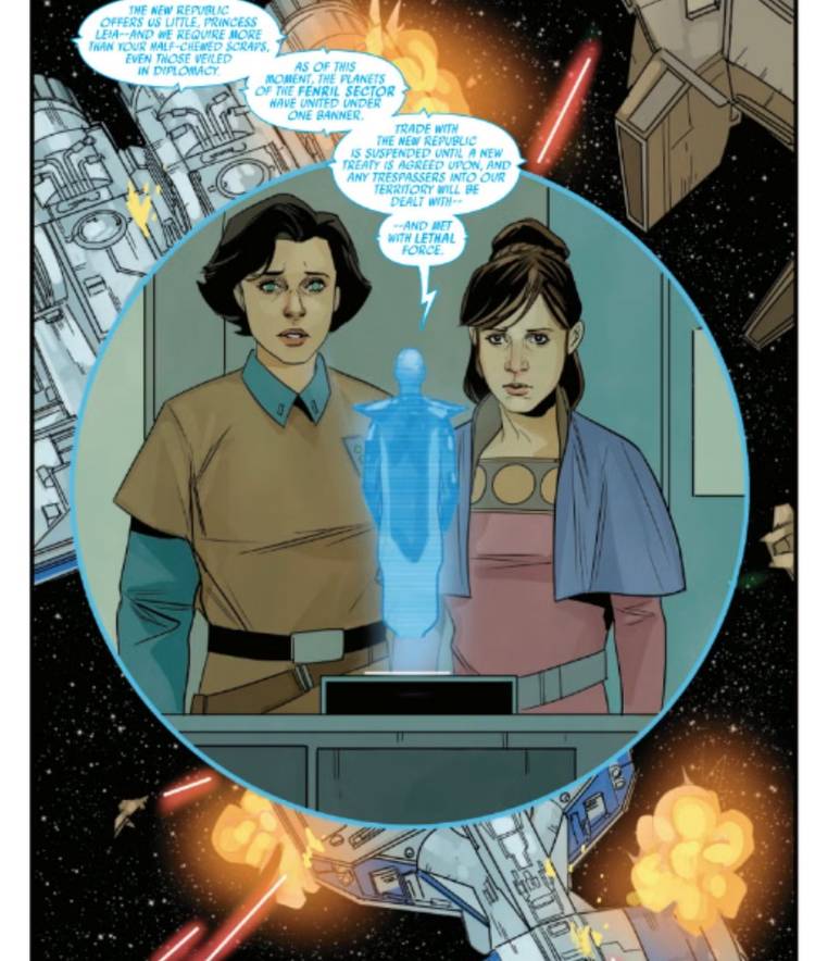La apertura de Star Wars #1 Presenta el sector de Fenril, una ubicación clave en la galaxia que se tambalea al borde de la rebelión. Luke es enviado para investigar el área Cuando se involucra con piratas y se encuentra con un destructor de estrellas imperiales recuperado. El caos revela que este sector está lejos de contento con la regla de la nueva República y, en las páginas finales del problema, declara su intención de separarse. Con el pueblo de Fenril en contra de la nueva República, las consecuencias de esta deserción amenazan con desestabilizar la paz Luke Skywalker y sus amigos lucharon para asegurar.