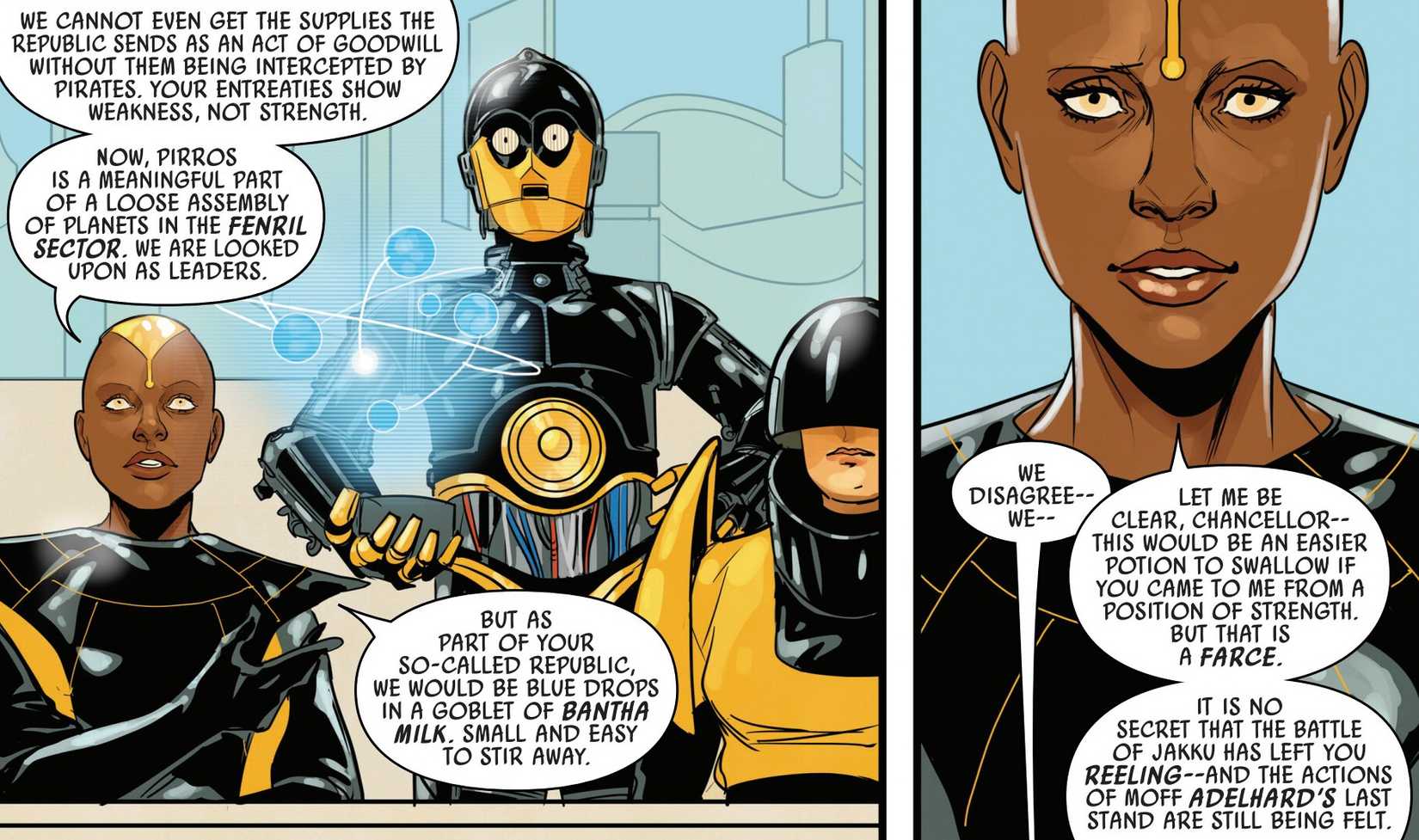 Este movimiento refleja la inestabilidad política que condujo a las Guerras Clon, cuando los separatistas se separaron de la República Galáctica. A medida que aumentan las tensiones, el cómic también muestra cómo estos eventos Continuar la larga historia de Star Wars de explorar los disturbios políticosutilizando alegorías que resuenan con problemas del mundo real.