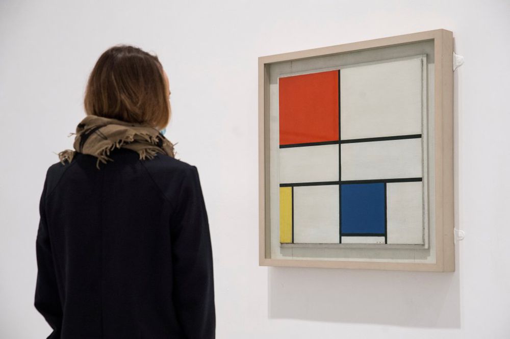 Vista de la obra del holandés Piet Mondrian 'Composición C (n·III) con rojo, amarillo y azul' (1935), en la exposición de 'Mondrian y el movimiento De Stijl'.