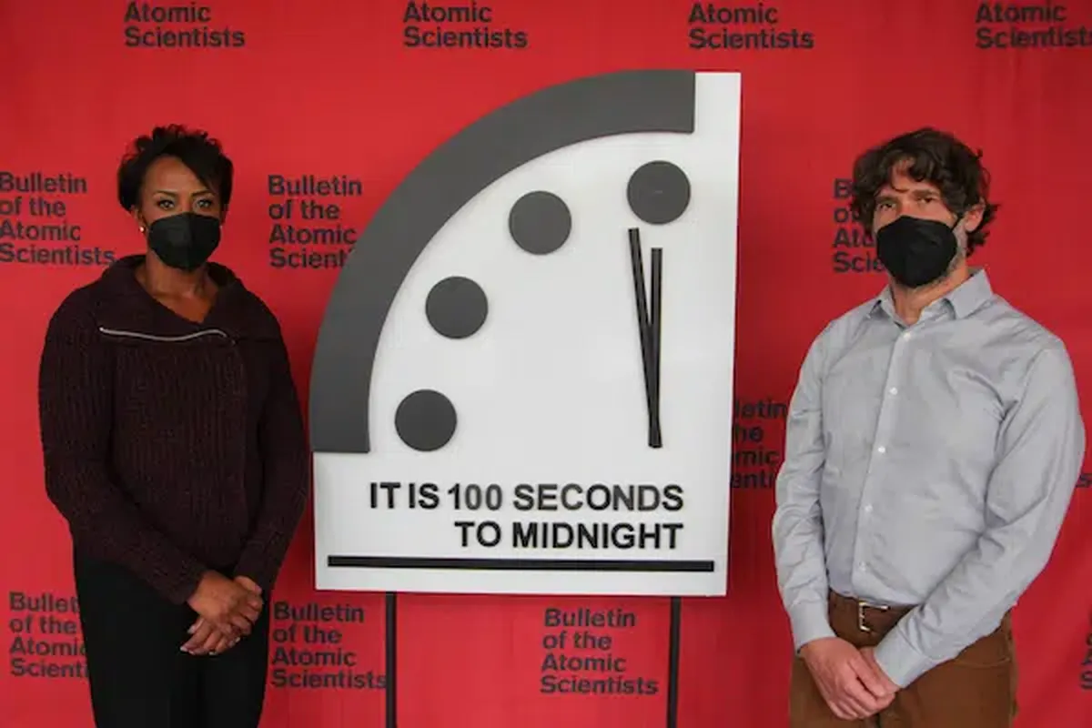 Hace 75 años, integrantes del Proyecto Manhattan, creado para el desarrollo de armas nucleares, crearon el Boletín de Científicos Atómicos, la publicación de un grupo que pretende alertar al público, a los responsables políticos y a los científicos de las amenazas para la humanidad que esta genera. A modo de metáfora, todos los años ajustan un imaginario reloj del fin del mundo en función de los riesgos creados por las armas nucleares, el cambio climático y las tecnologías disruptivas. Este jueves lo han mantenido a 100 segundos de la medianoche, hora simbólica del apocalipsis. Para el comunicador científico invitado este año, Hank Green, “no es una buena noticia”.