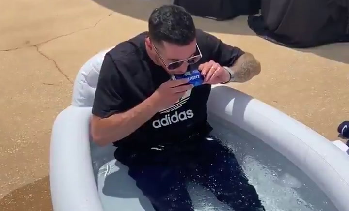 Al concluir los entrenamientos se sentó en una bañera llena de hielo, abrió la lata de cerveza y se la tomó toda de un sorbo.