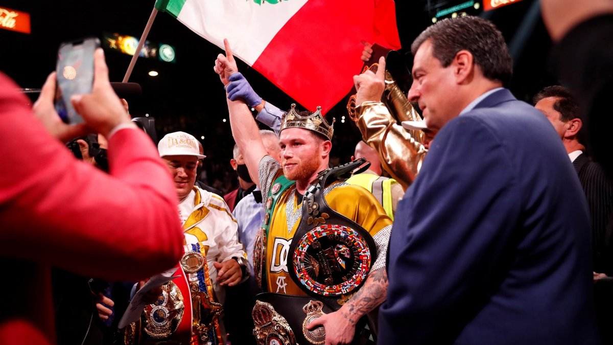 Álvarez es el primer peleador mexicano en reinar indiscutiblemente en la cima de una división, y todos los fanáticos que ondeaban banderas en la multitud de 16.586 personas vendidas vehementemente a favor de Canelo parecían estar al tanto del logro.