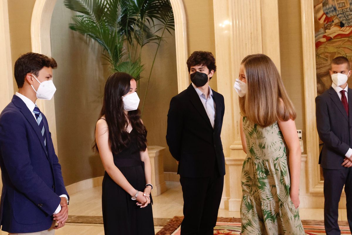 A finales del mes de agosto, la princesa Leonor comenzará una nueva andadura académica lejos de casa, en el Atlantic College de Gales. Atrás dejará a sus amigos y compañeros del que hasta ahora ha sido su colegio, el Santa María de los Rosales, donde ha estudiado junto a su hermana, la infanta Sofía, y al que también acudió su padre. Un cambio de vida que será más fácil gracias a que, desde ayer, ya conoce a algunos de sus compañeros. Este martes, los Reyes, junto a sus hijas, recibieron en La Zarzuela al Patronato de la Fundación Comité Español de los Colegios del Mundo Unido —institución a la que pertenece el centro en el que cursará bachillerato—, acto al que también acudieron 20 alumnos españoles de la misma promoción que la joven, de 15 años.