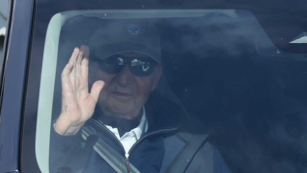 Juan Carlos I (85) dice adiós a Sangenjo sin poder subir al Bribón 500 desde el pasado viernes. El Rey emérito se marcha hoy del municipio pontevedrés repitiendo la escena de ayer al no poder participar en las dos pruebas de la regata que se disputan este domingo en la localidad de Sangenjo, en el marco de la Copa del Rey de Vela, debido a las nada favorables condiciones climatológicas.