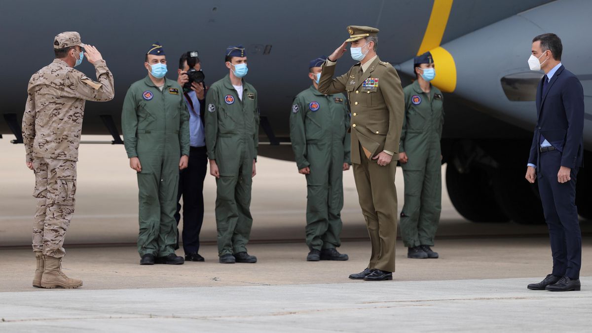 El Rey, el presidente del Gobierno, Pedro Sánchez, la ministra de Defensa, Margarita Robles, y el jefe de la cúpula militar, almirante general Teodoro López Calderón, han recibido este jueves en la base aérea de Torrejón de Ardoz (Madrid) a las últimas tropas españolas desplegadas en Afganistán, poniendo fin a una misión que ha durado 19 años, 3 meses y 20 días.