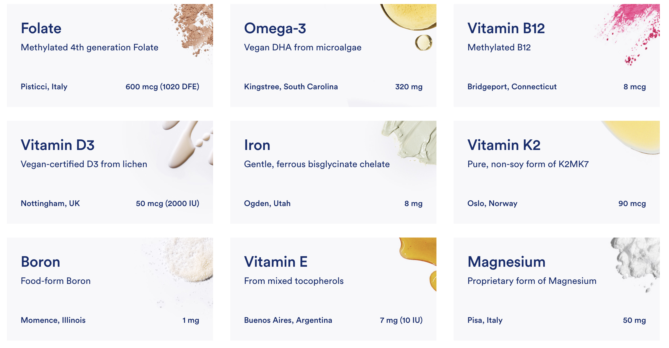 Ingredientes que se encuentran en el multivitamínico para mujeres de Ritual.