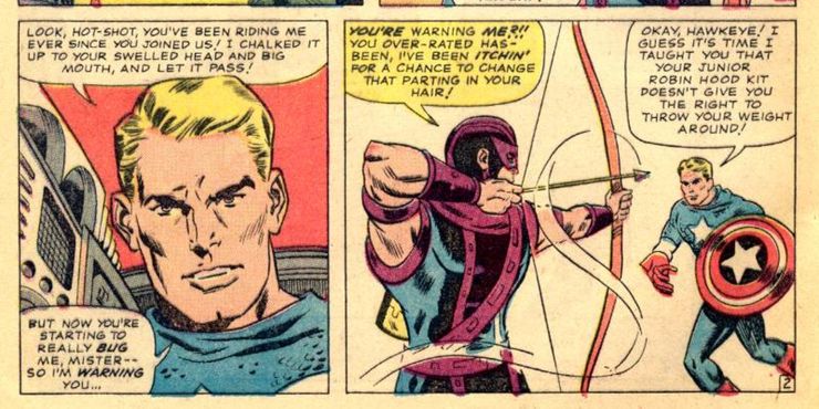 En ese momento, el Capitán América tenía el máximo respeto por Iron Man, un sentimiento que se expresaba mutuamente, y los dos se llevaban muy bien como compañeros de equipo y compañeros héroes. De hecho, el Capitán América y Iron Man rara vez tenían problemas antes deGuerra civil, que es bastante nuevo en términos de continuidad de Marvel Comics, lo que significa que han estado en buenos términos por mucho más tiempo. Sin embargo, el Capitán América y Ojo de Halcón tuvieron problemas desde el principio, y después de unos pocos números de cómics juntos, esos problemas menores se elevaron al desdén mutuo, lo que demuestra que Capitan Americaes original Vengadores el rival no era Hombre de Aceroera Ojo de halcón.
