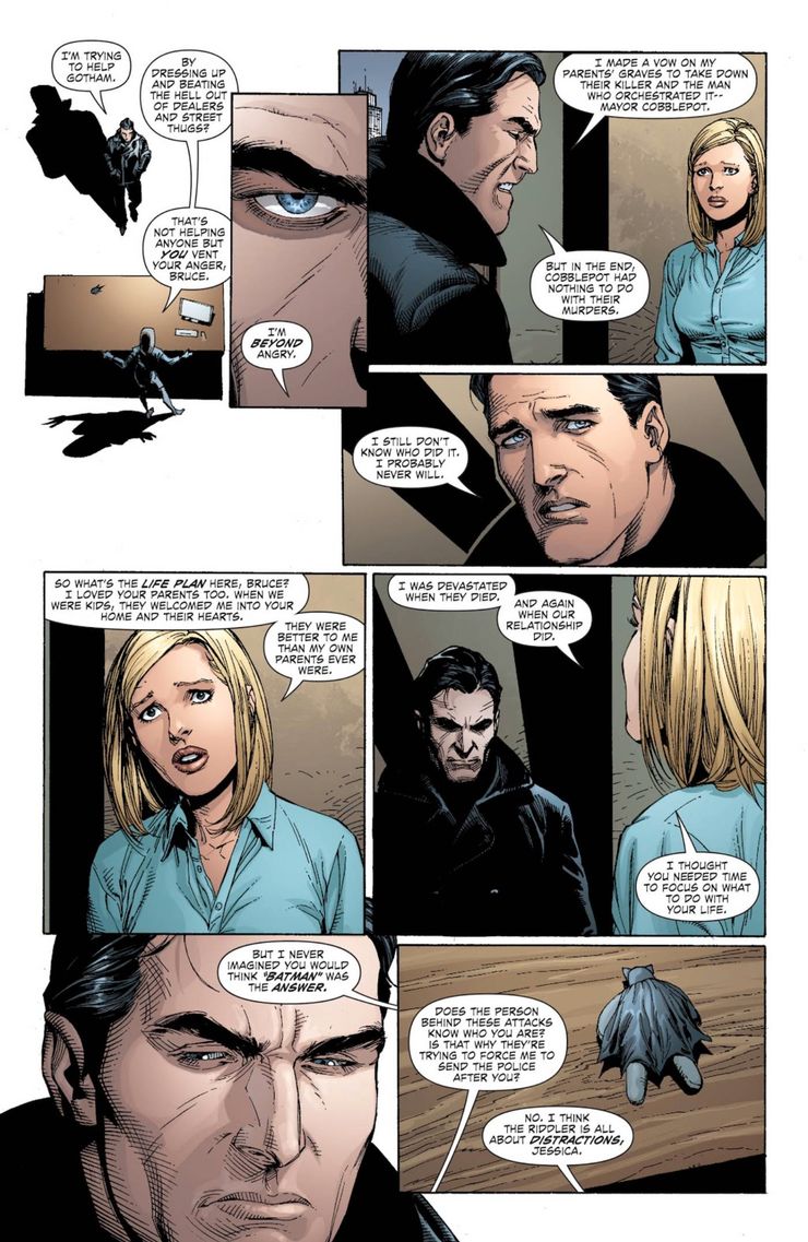 Al igual que Rachel, Jessica es consciente del alter ego de Bruce y lamenta cómo evitó que se involucraran románticamente. Sin embargo, sigue siendo comprensiva y comprende a Bruce porque habían crecido juntos. A diferencia de Rachel, Jessica no necesita ser asesinada abruptamente por hombre murciélago someterse al desarrollo del carácter. De hecho, incluso tiene un lado oscuro, como se explora más adelante en la serie.