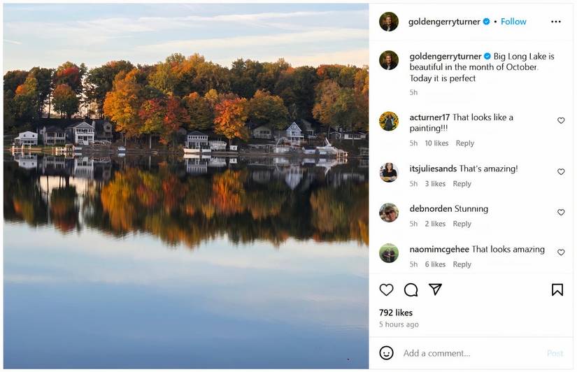 Al menos uno de ellos habría tenido que mudarse si hubiera encontrado un lugar donde vivir. juntos. Ahora que no tiene que preocuparse por moverse, GerryNo tiene miedo de expresar lo feliz que está quedándose en Indiana, si tenemos en cuenta su última actualización de Instagram. El soltero dorado Lead publicó una foto de Big Long Lake en el condado de LaGrange, Indiana, con su superficie tranquila y casas y follaje de otoño al fondo. En el título de su publicación, Gerry dijo: “Big Long Lake es hermoso en el mes de octubre. hoy esta perfecto“.