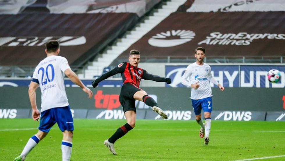 Jovic ingresó en el terreno de juego con 1-1 en el marcador en sustitución de Erik Durm y marcó un golazo de volea con la pierna derecha para hacer bueno el centro desde la banda izquierda de Filip Kostic (72’). El serbio, en temporada y media con el Madrid, solo había marcado dos goles, uno de ellos muy similar al que ha anotado ante el Schalke, colista de la Budesliga