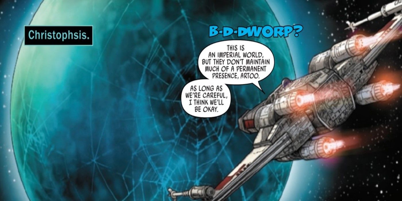 En el número 34 de Marvel’s Guerra de las Galaxias cómics, de Charles Soule y Madibek Musabekov, Luke Skywalker y R2-D2 viajan a Christophsis en busca de un raro cristal Kyber, ya que Ilum (la fuente tradicional de cristales Kyber para Jedi) ha sido devastada por el Imperio. Buena parte del primer acto del 2008 Las Guerras Clon La película está ambientada en Christophsis, con Ahsoka Tano debutando como padawan asignado de Anakin Skywalker durante una gran batalla entre las fuerzas de la República y Separatistas. Luke no solo dará un gran paso hacia el título de Caballero Jedi en Christophsis, sino que también está siendo instruido por la antigua Fallanassi, Greta, creando otro paralelo con Tano.