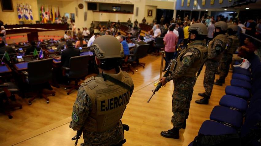 El presidente Bukele entró al Parlamento custodiado por militares de la Policía y la Fuerza Armada y advirtió que los diputados que no acudieron a la sesión para discutir un préstamo que financie un plan contra las pandillas rompieron “el control constitucional”.