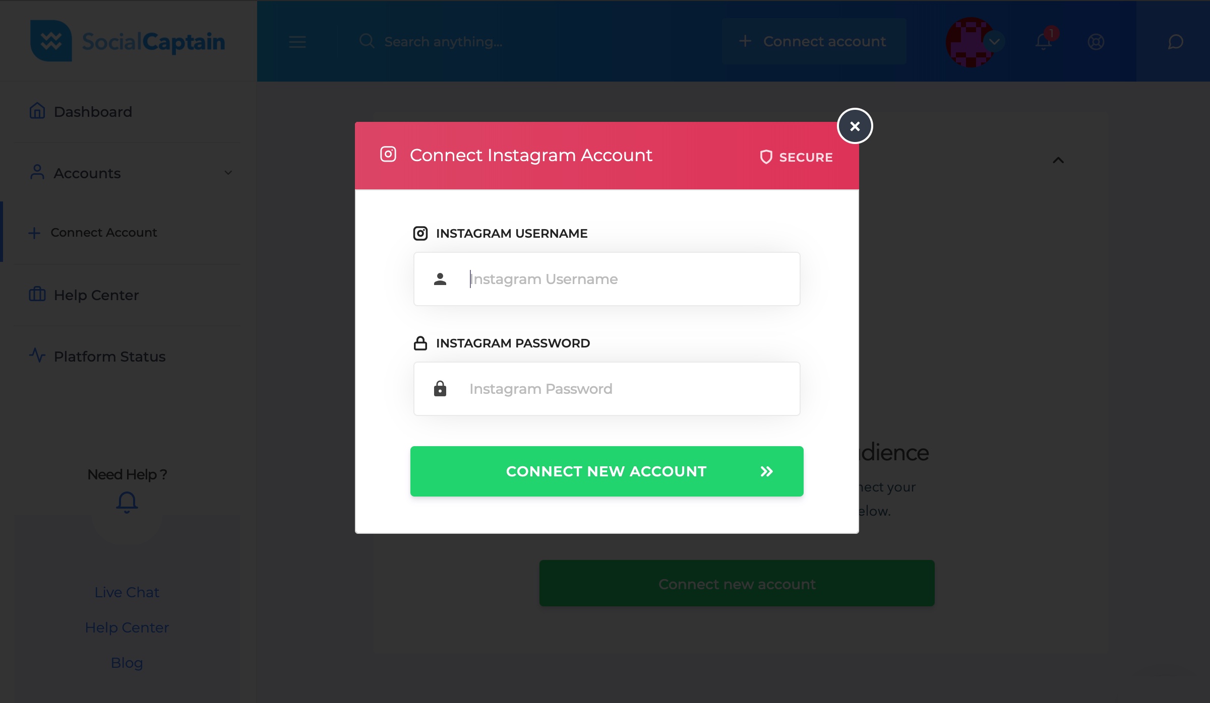 La compañía, Social Captain, dice que ayuda a miles de usuarios a aumentar su número de seguidores de Instagram conectando sus cuentas a su plataforma. Se les pide a los usuarios que ingresen su nombre de usuario y contraseña de Instagram en la plataforma para comenzar.