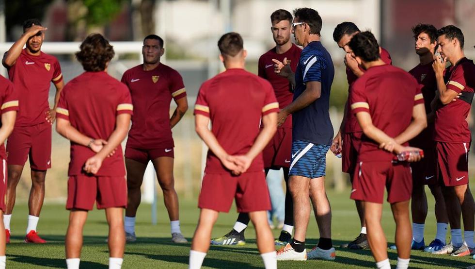Con la presencia de Marko Dmitrovic como única cara nueva de momento, el Sevilla celebró su primer entrenamiento en uno de los campos anexos de la ciudad deportiva en una sesión marcada por una charla inicial del director general deportivo, Monchi, tras la que siguió la del entrenador guipuzcoano.